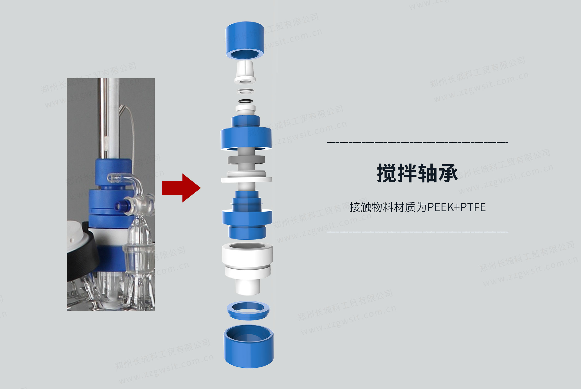 ● 攪拌槳葉片采用聚四氟乙烯材料制作;攪拌軸采用SUS304,外包聚四氟乙烯。